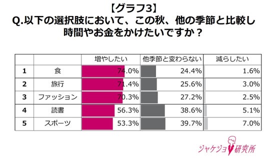 ■秋は「食」「旅行」「ファッション」にお金や時間をかけけたい女性が約70%