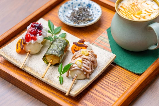九博庭園 足湯茶屋では、秋の訪れを感じるお団子を提供しています。また、肌寒くなってくる季節にぴったりの温かいドリンクもご用意しています。秋のティータイムにお楽しみください。