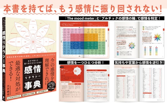 そこで本書では、心のパワーとご機嫌レベルを測る「The Mood Meter」、感情を解剖する感情モデル「プルチックの感情の輪」という、“今”の自分や周囲の人の感情を正しく把握するツールを提供し、40以上の感情の解説と感情が乱れた際の対処法を伝えます。