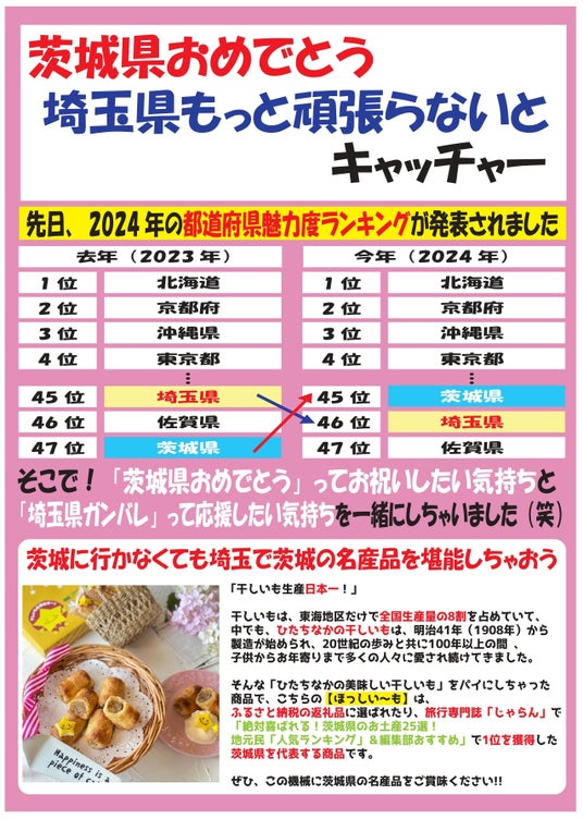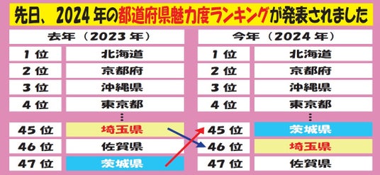 というのも、茨城県が2ランクUPし、埼玉県が1ランクDOWNしました。