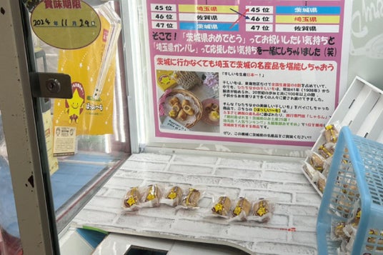 そこで、茨城県の名産品を、当社のクレーンゲーム専門店「エブリデイ」がある埼玉県で、クレーンゲームの景品として採用させて頂き、お客様に獲得して茨城県の名産品を味わい堪能して頂くことで、茨城県に対してまだ知らなかった「こんな魅力あったんだ」という理解や「魅力度ランキングUPおめでとう!」と祝福につながり、と同時に、クレーンゲームを楽しんで頂くことで「埼玉県もガンバレ!」という応援につながる面白いクレーンゲームを誕生させました。