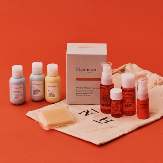 さらに、NEMOHAMOのスキンケアとヘアケアアイテム8点が入ったミニサイズセットのスペシャルキットも発売。洗顔ソープからフルバリア美容液までのスキンケアの5STEPと全国のホテル、旅館のアメニティとして多数起用されているシャンプー、トリートメント、ボディソープがお試しできるキットとなっております。