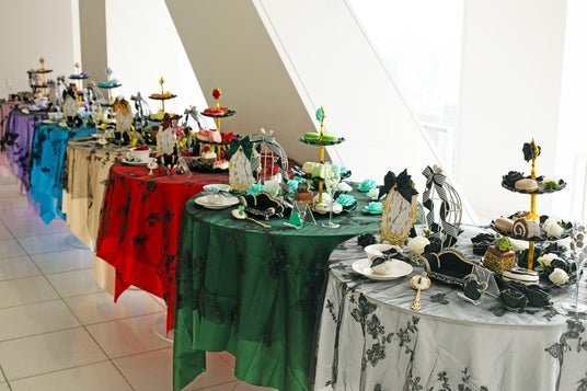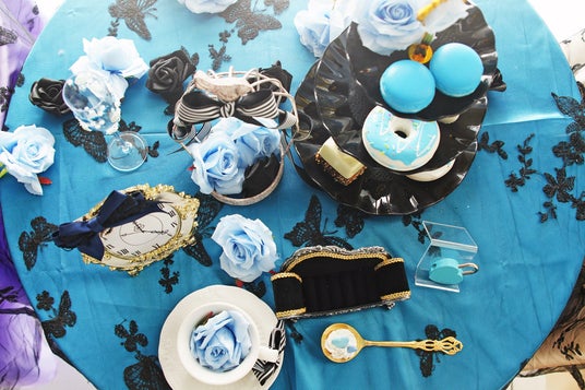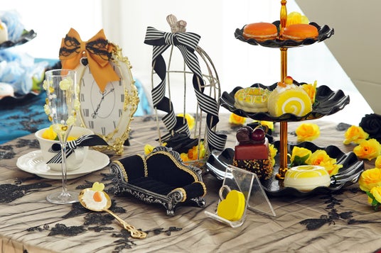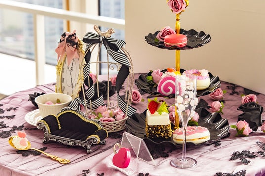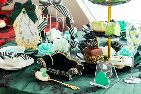 黒を基調としたアフタヌーンティーセットの上には、各カラーに合わせたスイーツが可愛く並んでいます。