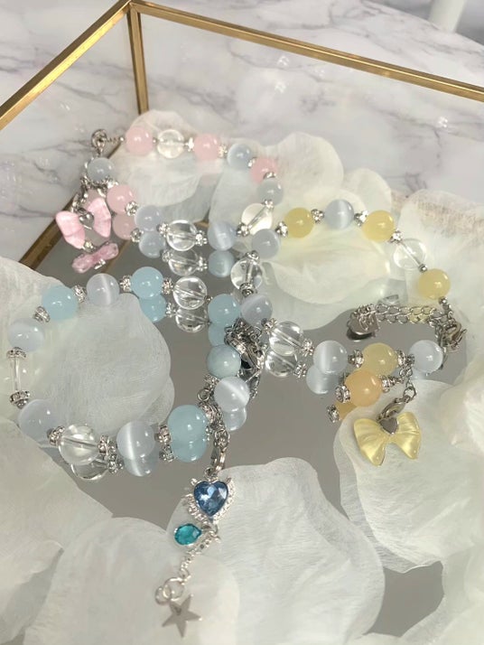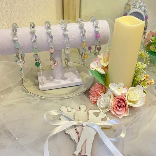 「ラッキーフォーチュンブレスレット」は、パワーストーンに願いを込めて、身に着けることができるアクセサリーです。キラキラ輝くブレスレットは、推し活ファッションのアクセントにもぴったり(ハート)