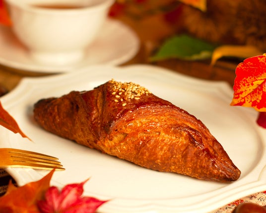 商品特徴:栗風味のクロワッサン生地に栗クリームとあんこを包んでパリッと焼き上げました。秋ならではの和風な甘味をお楽しみください。