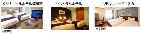 横須賀港より車で約10分以内の3つのホテルよりご希望のホテルをお選びいただけます。