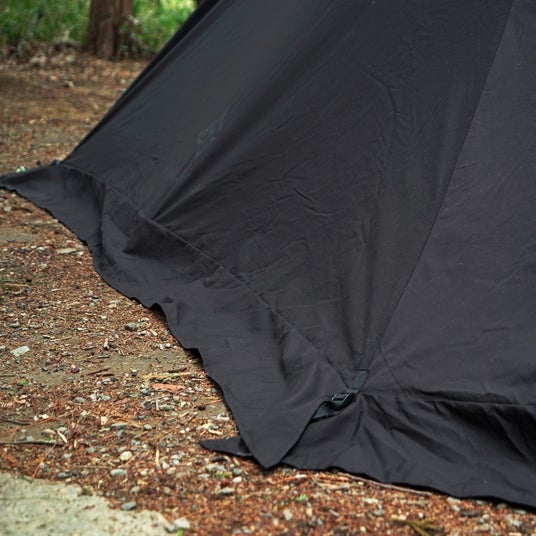BLACK TIPI V2(ブラックティピーV2)は4隅をペグダウンしてポールを立ち上げる、四角形型のワンポールテント。