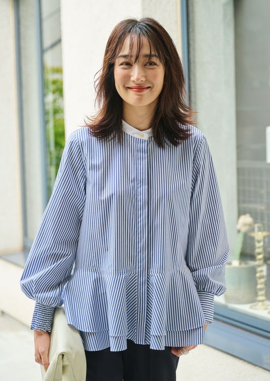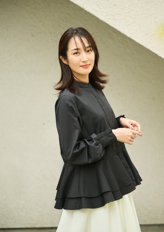 ふわりと広がる2重のフリルが華やかなブラウス。