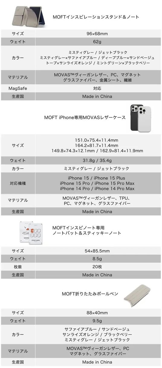 MOFTとは“MOBILE OFFICE FOR TRAVELERS”の略。2019年の設立以来、世界100カ国以上で、効率性とシンプルさを追求したパーソナルオフィス用アクセサリーを販売し、モバイル&デジタルライフを生きる人々をサポートしてきました。これからもリモートワーク時代の革新的ブランドとして、新しいライフスタイルを提案してまいります。