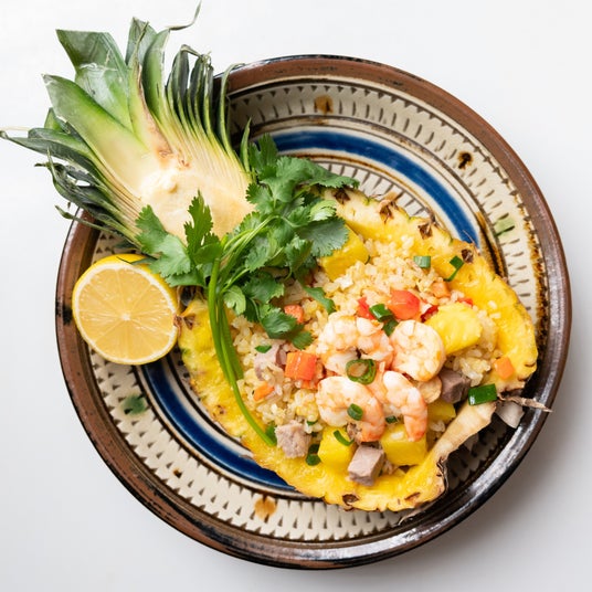 パイナップルチャーハンヌクマムで炒めたチャーハンと完熟パイナップルがマリアージュした炒めごはん。