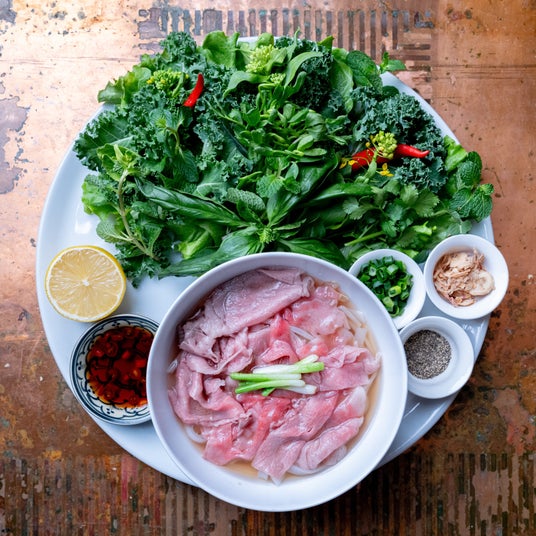 和牛肩ロースのフォー和牛の肩ロースをどんぶりいっぱいに敷き詰めた贅沢なフォー。