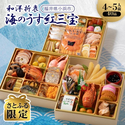2025年新春三段重おせち『御食国若狭小浜の海のうす紅三宝』(約4~5人前)さとふる限定・和洋折衷