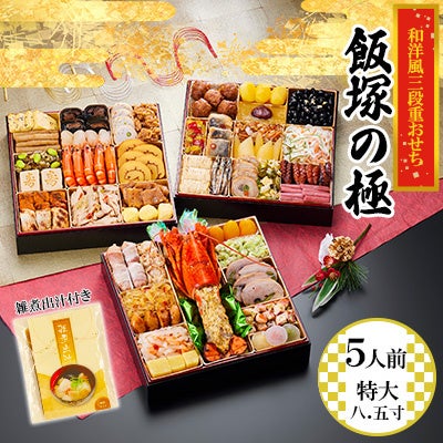 「飯塚の極」 特大八.五寸 和洋風三段重おせち(5人前)