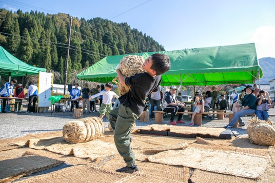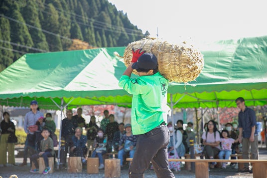 昨年は286人が挑戦した毎年大人気の企画です。1人が1年間で消費するお米が一俵(約60kg)と言われていますが、昔は一俵を担ぎあげて運ぶことができれば一人前とされました。また、かつて俵編みは、冬場の農閑作業として各家で行われていましたが、現在は編むことが出来る人は数少なくなっています。農村文化の継承と昔ながらの知恵を感じてほしいという思いで、毎年この企画を続けています。