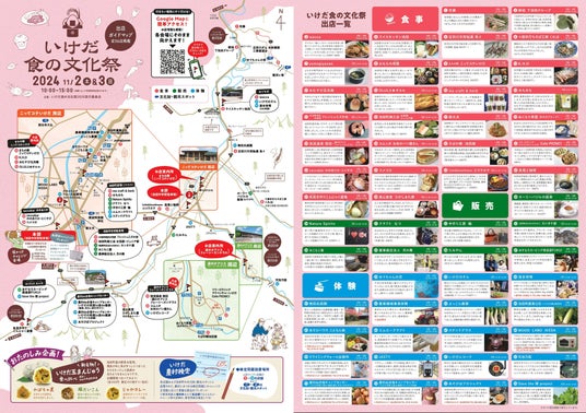 今回で17回目、毎年リピーターが増えている「いけだ食の文化祭」。池田町の食文化を支える生産者たちの背景を知ってほしい、交流を楽しんでほしいという思いから、会場は生産者それぞれの地元、つまり町内一円となっております。そばや新米、鮎、野菜など地元食材を使った料理のほか、木工体験や保存食作りなど、農村ならではの魅力に触れられる店舗が56店、町内のあちこちに出店します。訪れた人はガイドマップを片手に町を巡っていただくスタイルで、地元住民との深い交流が楽しめると好評です。