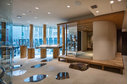 【3F】コンセプト:呉服屋・枯山水の庭(龍安寺モチーフ)、キーマテリアル:白漆・溶岩石