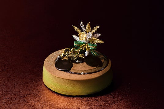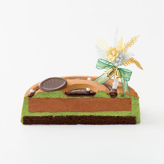 2本の木が途中で1本に結ばれている「連理の賢木(れんりのさかき)」や、一つの茎から二つの葉が生える「双葉葵(ふたばあおい)」などから得た神秘的なマリアージュを、抹茶(和素材)とショコラ(洋素材)の味わいで表現しました。