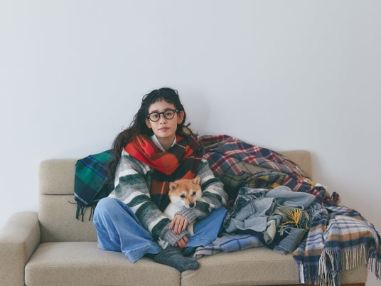 InstagramやYouTubeチャンネル『ゆきふいるむ』など多方面で活躍中の愛服家・yukiさんとの別注モデル。別注のベースとなったのは長さ 約190cm、幅 約70cmの大判サイズのカシミヤストール「WA56」です。 首元にボリューム感を演出しやすいほか、肩にかけてライトアウター感覚の羽織りものとして、さらにデスクワークや自宅ではブランケットのような使い方まで、幅広く活躍するブランドを代表するアイテムです。