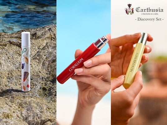 Carthusiaコレクションのベストセラーである3つの香りに包まれ、海や自然を感じさせる忘れられない香りを体現できます。