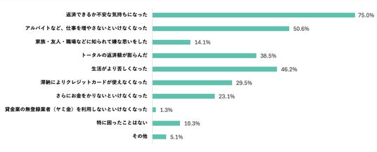 ▲「お金を借りて困ったこと」に対する回答(n=156)