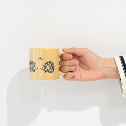 パッケージと同じハリネズミ三兄弟が、「Fika!」とおやつタイムを喜ぶ姿のマグカップがセットになりました。