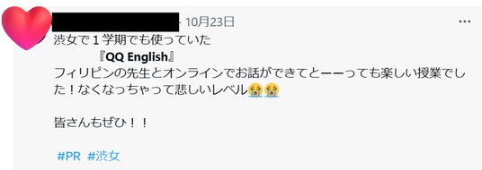 株式会社QQEnglish(本社:東京都渋谷区、代表取締役:藤岡頼光)は、2024年10月23日(水)に渋谷女子インターナショナルスクール(以下、渋女)のSNS授業に特別授業のアフターレポートをお届けいたします。今回、生徒の皆さまにはQQEnglishをSNSでPRする方法を考えていただきました。さまざまな学びと交流を通じ、SNS投稿における意義や影響を共有しました。