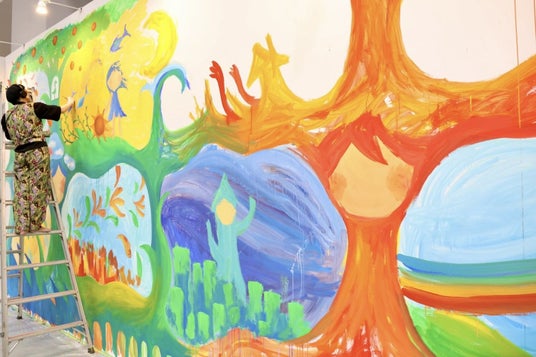 会期の2日間をかけて作品が完成するライブペイント。大きなキャンバスに描かれていく作品を間近でお楽しみいただけるデザフェスならではのエリアです。