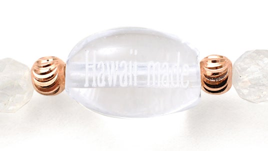 Hawaii Made と刻印の水晶。ご希望の方には裏面にお好きな文字を彫ることもできます。