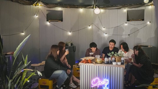 当店のネオン牡蠣小屋では食事だけでなく空間や会話も楽しんでいただくのがコンセプト。