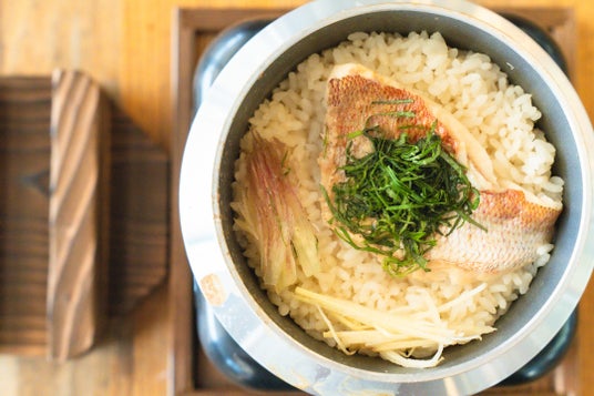 真鯛の切り身と出汁の味が効いた「鯛めし」