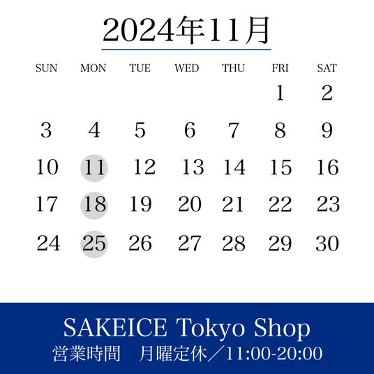 SAKEICE Tokyo Shop営業日(2024年11月)