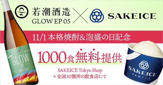 11月1日の本格焼酎&泡盛の日を記念して、若潮酒造株式会社とSAKEICE(株式会社えだまめ)がコラボレーションします。本格焼酎をもっと多くの方々に楽しんでもらうため、若潮酒造の人気焼酎「GLOW EP05」を使った特製のアルコール入りアイス(以下『GLOW EP05 SAKEICE』)が誕生しました。11月1日、SAKEICE Tokyo Shop(東京駅)と全国の焼酎の銘店30店舗にご協力いただき、この特製アイスを1000食限定で無料提供いたします。