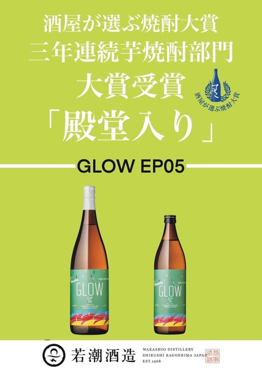 「GLOW」シリーズは製法社外秘のコンセプトで2018年から毎年中身とデザインを変えて発売してきた芋焼酎です。今回アイスクリームとコラボした「GLOW EP05(エピソード05)」は2022年4月に販売を開始し、酒屋が選ぶ焼酎大賞で芋焼酎部門大賞を3年連続で受賞し2024年に殿堂入りした大人気商品です。