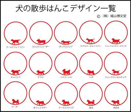 株式会社 城山博文堂では、道に見立てたハンコの外枠を犬が散歩する「犬の散歩はんこ」を10月28日に発売しました。