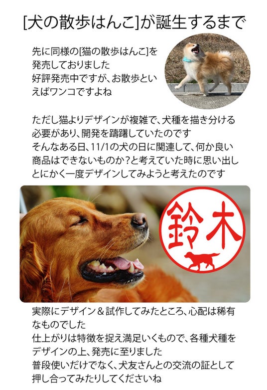 特に犬の飼い主様同士、お互いに捺印し合うなどのコミュニケーションツールとして活用していただけるのではないかと考えています。