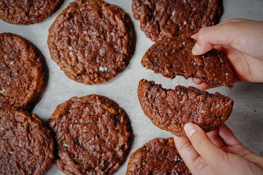 『チョコ感を限界まで楽しめるクッキーを作りたい』、そんな想いから今回は全体の70%以上をチョコで構成。ごろっと詰まったチョコレートチャンクを含め、全て上質なヴァローナのチョコを贅沢に使用しています。あくまで主役はチョコ、そこに寄り添う生地の配合を何度も調整し、ほろっとした食感のクッキーに。