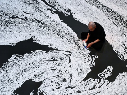 浄化や清めを喚起させる「塩」を用いてインスタレーション作品を制作。床に巨大な模様を描く作品は長い時間を掛け、一人で描き上げる。展覧会最終日には作品を鑑賞者と共に壊し、その塩を海に還すプロジェクトを実施している。