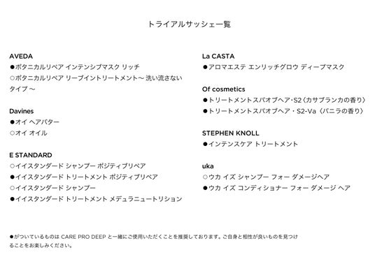 是非「CARE PRO DEEP」と一緒に上質なブランドのトリートメントをお試しいただき、ご自身の髪と相性の良いシャンプー&トリートメントを見つけていただく機会になればと思います。