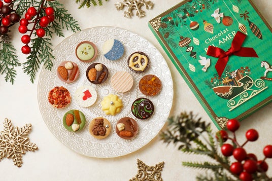 全国ベルアメールストアとベルアメール公式オンラインショップでは、12月1日から12月25日まで1日1枚ずつ楽しむ25種のパレショコラが入った”パレショコラアドベントカレンダー2024″のご予約を承っております。
