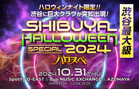 「SHIBUYA HALLOWEEN SPECIAL 2024(ハロスペ)」は、豪華ゲストと国内最高峰のDJを迎えた、渋谷最大級のハロウィンイベントです。Spotify O-EAST、duo MUSIC EXCHANGE、東間屋が、10月31日(木)限定で巨大クラブに変貌。お笑いライブ、DJライブ、仮装コンテストなど、豪華コンテンツがハロウィンナイトを盛り上げます。