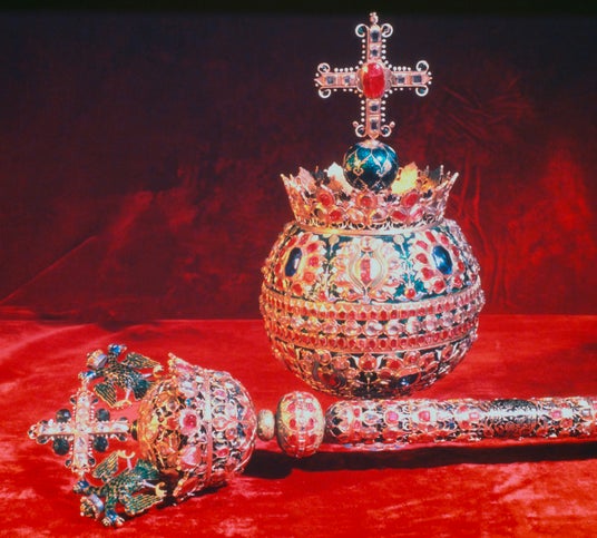 ロマノフ王家の大量のジュエリーコレクションのひとつ「ロシア皇帝アレクセイ・ミハイロヴィチの王笏と宝珠/17世紀」
