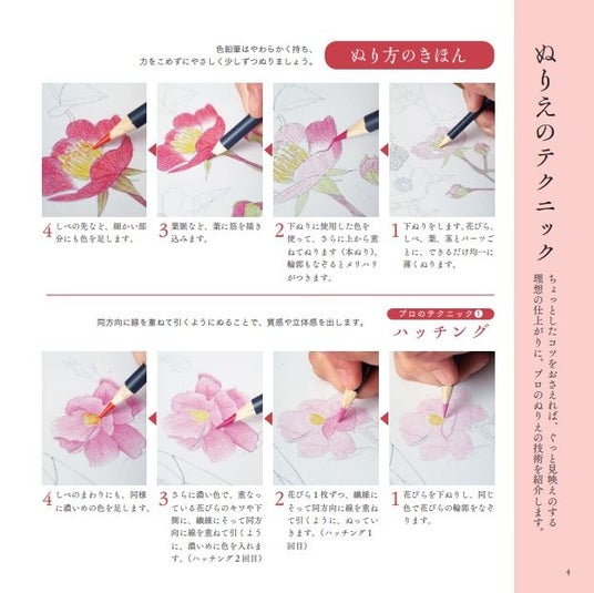 ◆工夫その1)色鉛筆による繊細なぬり見本と「ぬりえのテクニック」解説
