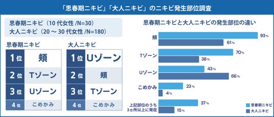 ■「思春期ニキビ」と「大人ニキビ」の発生部位を徹底比較