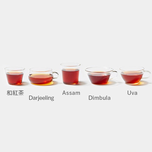 紅茶好きのお客様と選んだ、ダージリン、アッサム、ディンブラ、ウバ、そして国産の和紅茶5種類が楽しめる紅茶のアソート。和紅茶は、日本茶AWARD2023審査員奨励賞を受賞しています。