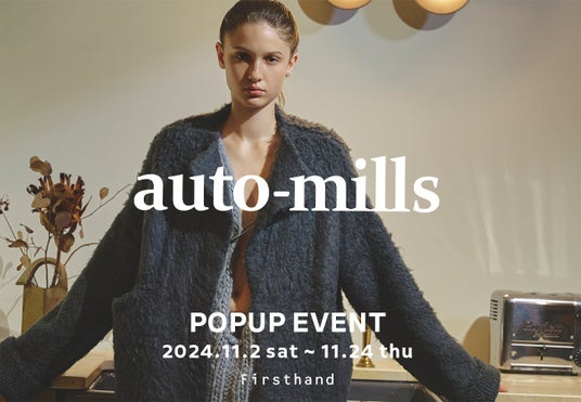株式会社デイトナ・インターナショナルが運営するサステナブル・ファッション・アートをテーマとしたコンセプトストア「Firsthand (ファーストハンド)」 はウィメンズファッションブランド【automills / オートミルズ】のPOP UP EVENTを11月2日(土) ~24日(日) の期間限定でFirsthand RAYARD MIYASHITA PARK(ファーストハンド レイヤード ミヤシタ パーク)にてモアバリエーションイベントを開催します。