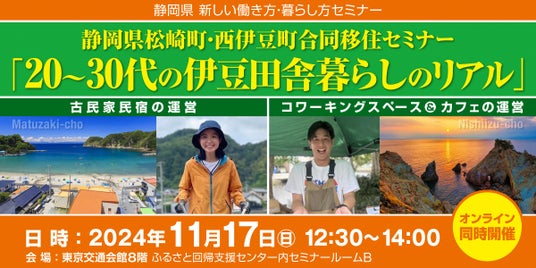 静岡県では、松崎町・西伊豆町合同移住セミナー「20~30代の伊豆田舎暮らしのリアル」を開催します。