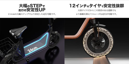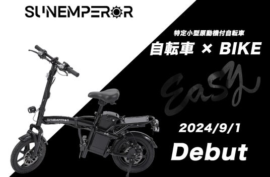 大人気車種「SS1」から得た経験や、お客様の声からいただいた意見を元に、“見た目や気軽さは自転車”のようで“性能は電動バイク”という、自転車とバイクの“いいとこ取り”をした、Sun Emperor新型モデルの特定小型原付。