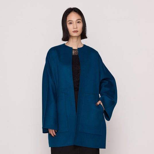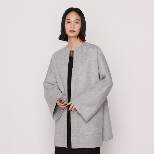 – 素材の軽さとハリコシを活かし、たっぷりとしたシルエットのリバー仕立てコートです。