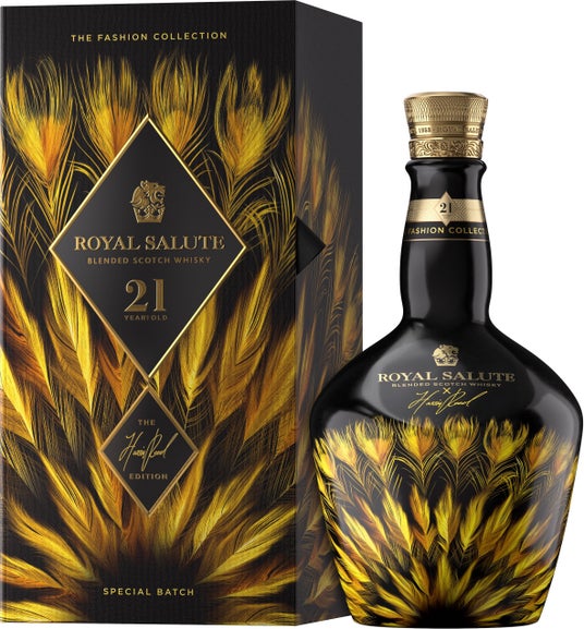1953年に英国女王エリザベス2世の戴冠式をお祝いするために誕生した「ローヤルサルート」は、21年以上熟成された類稀なるモルトウイスキーと、グレーンウイスキーをブレンドしたハイエンドなブレンデッドスコッチウイスキーです。「ローヤルサルート」では、ラグジュアリーな商品を求める新しい世代の消費者にブランドの存在を語りかける領域として芸術とファッションの世界に着目し、アーティストやデザイナーとのコラボレーションを行なっています。2019年と2023年に行なったイギリス人デザイナー リチャード・クインとのコラボレーションは大成功を収め、これに続くデザイナーとして、ファッションブランド「ニナ・リッチ」のクリエイティブ・ディレクターにメゾン史上最年少で就任し、ジェンダーの定義にとらわれないスタイルが高く評価されているハリス・リードとのコラボレーションが決定しました。