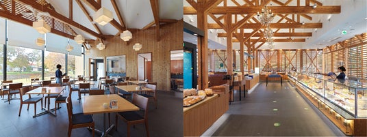 緑にあふれ、川のせせらぎや小鳥のさえずりが聞こえる1600坪もの広大な敷地には、ルタオの魅力がぎっしり。パン工房を持つのは、ルタオのなかでもドレモだけ。工房で焼いた、できたてのパンが店内にズラリと並びます。